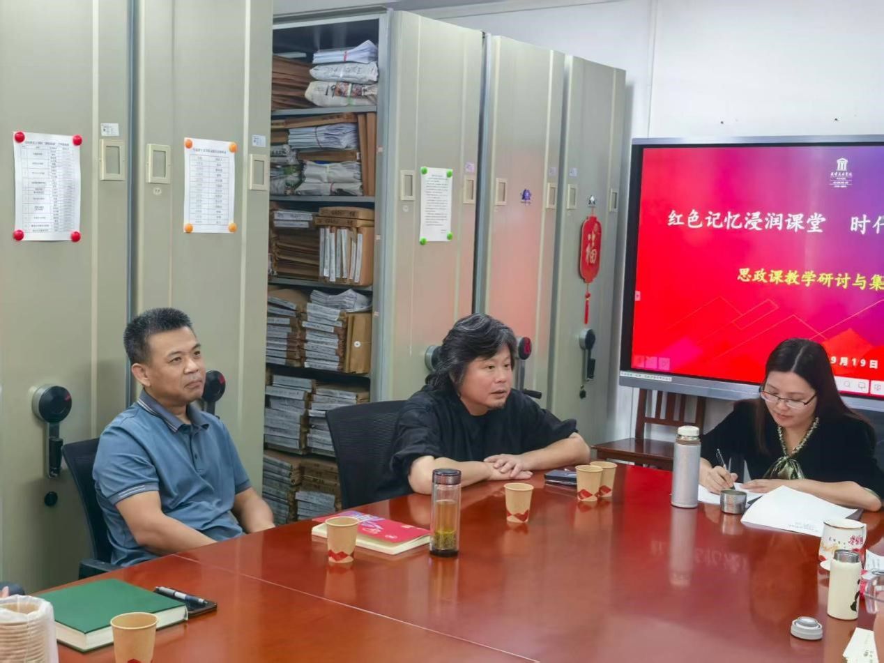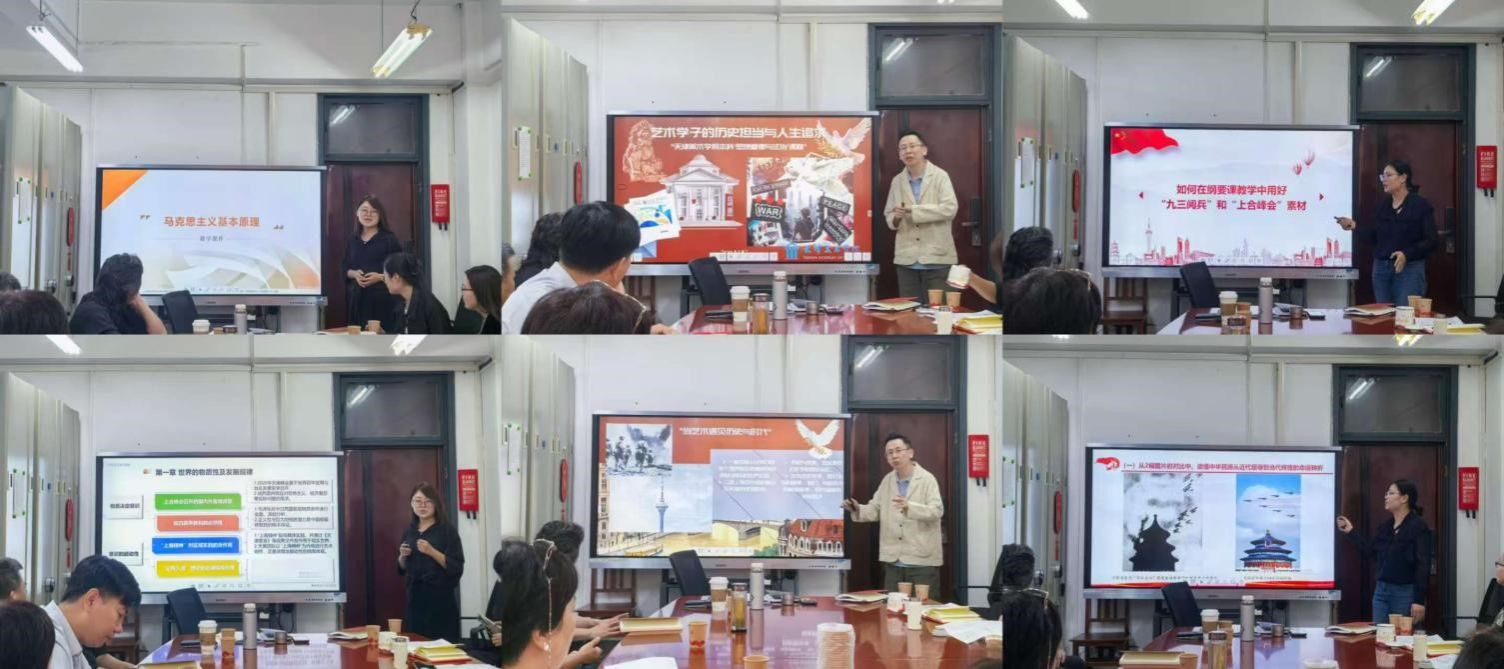 为深入学习贯彻习近平总书记在纪念中国人民抗日战争暨世界反法西斯战争胜利80周年大会上的重要讲话和习近平总书记在上合峰会期间发表的一系列重要讲话精神,进一步落实新时代高校思想政治理论课改革创新要求,推动思政课高质量发展,天津美术学院马克思主义学院于9月19日上午,组织开展“红色记忆浸润课堂 时代使命赋能教学”思政课教学研讨与集体备课会。副院长寇疆晖、市纪委监委驻天津美术学院纪检监察组组长李永奎、副院长陈占权出席并指导工作,马克思主义学院领导班子成员及全体思政课教师参加研讨。